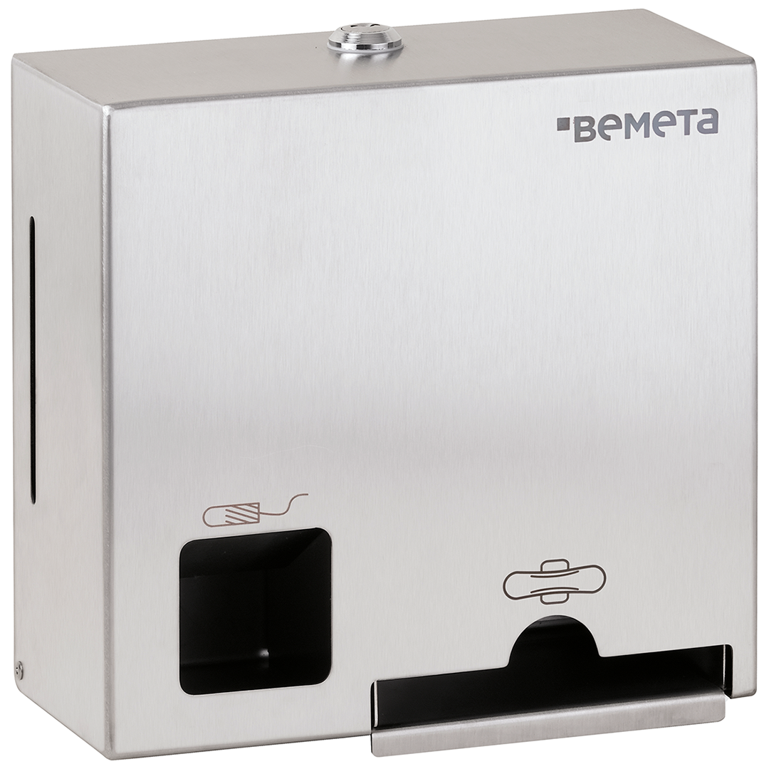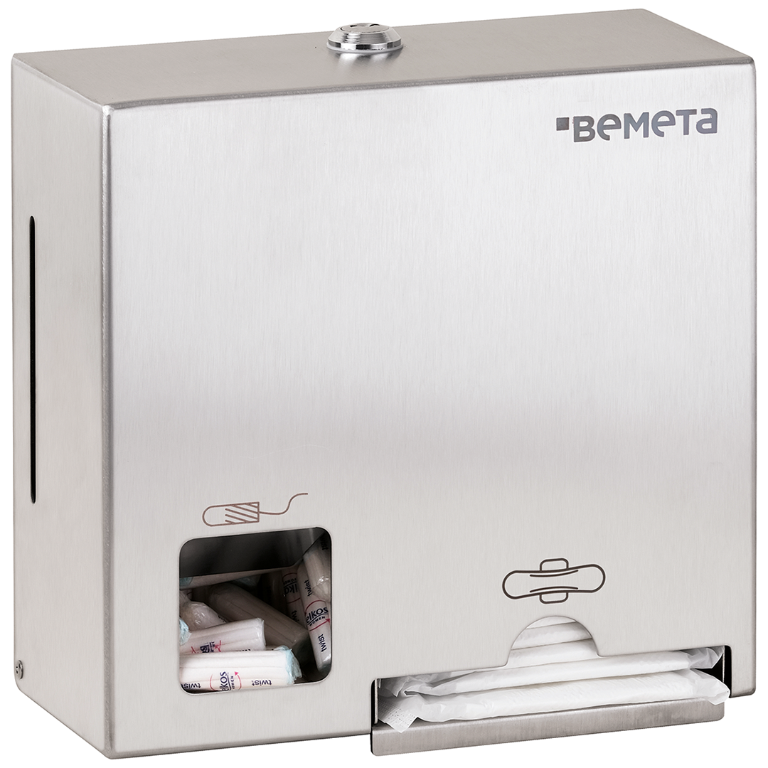 The stainless steel toiletries tray allows tampons and sanitary pads to be freely used by anyone who needs them. An ideal solution for schools, companies and public areas. Each tray holds 25-30 single pads and 100 tampons of usual sizes. The narrow holes on the tray’s sides make it easy to see if the contents need refiling. To refill, simply unlock the tray with the key, slide it out and refill the contents.
